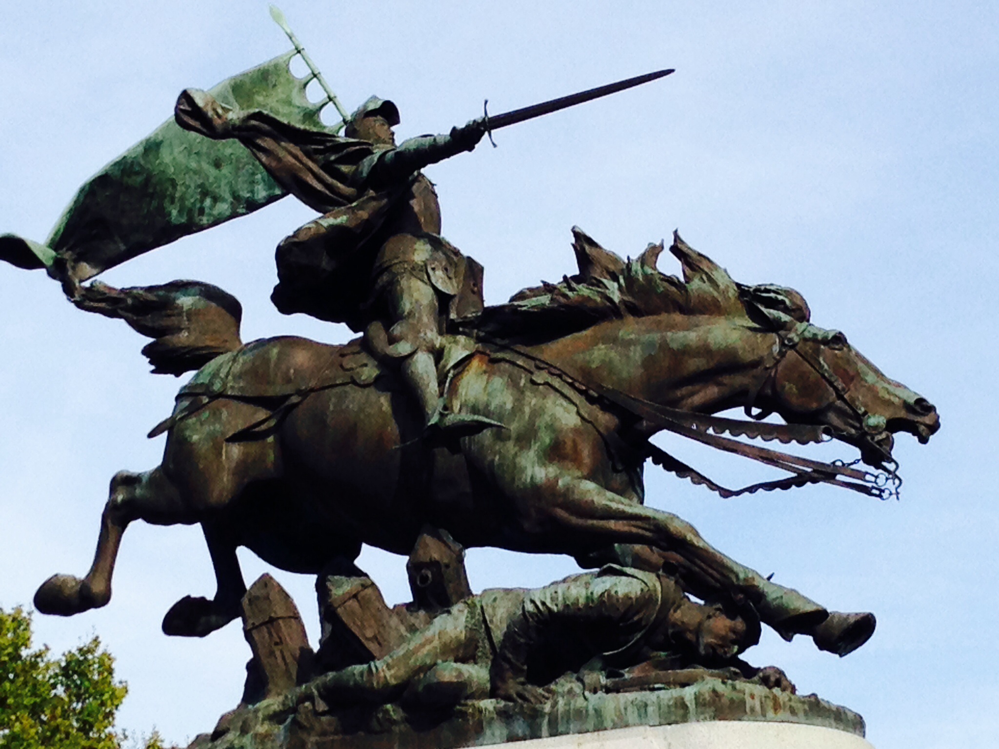 Our home for the night is Chinon on the Vienne River where we met up again with our friend, Jeanne d’Arc. Jeanne d’Arc came to the Château de Chinon in 1429 to petition Charles VII, the Dauphin of France. Charles granted her petition and she joined the siege of Orléans. She is commemorated in the main square in Chinon, as she is in Orléans. (Check out my early post on Orléans for more details on Jeanne d’Arc).