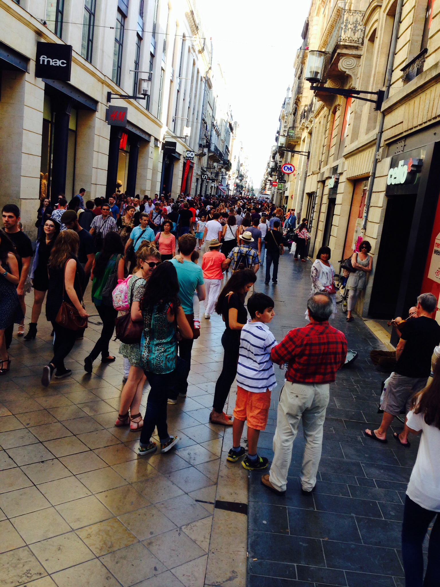 Saturday, we were window shoppers. The French love to shop and of course, are very stylish. The problem with downtown decay that so many North American cities experience, doesn’t exist here. On Saturday afternoon, the shopping streets looked like this………