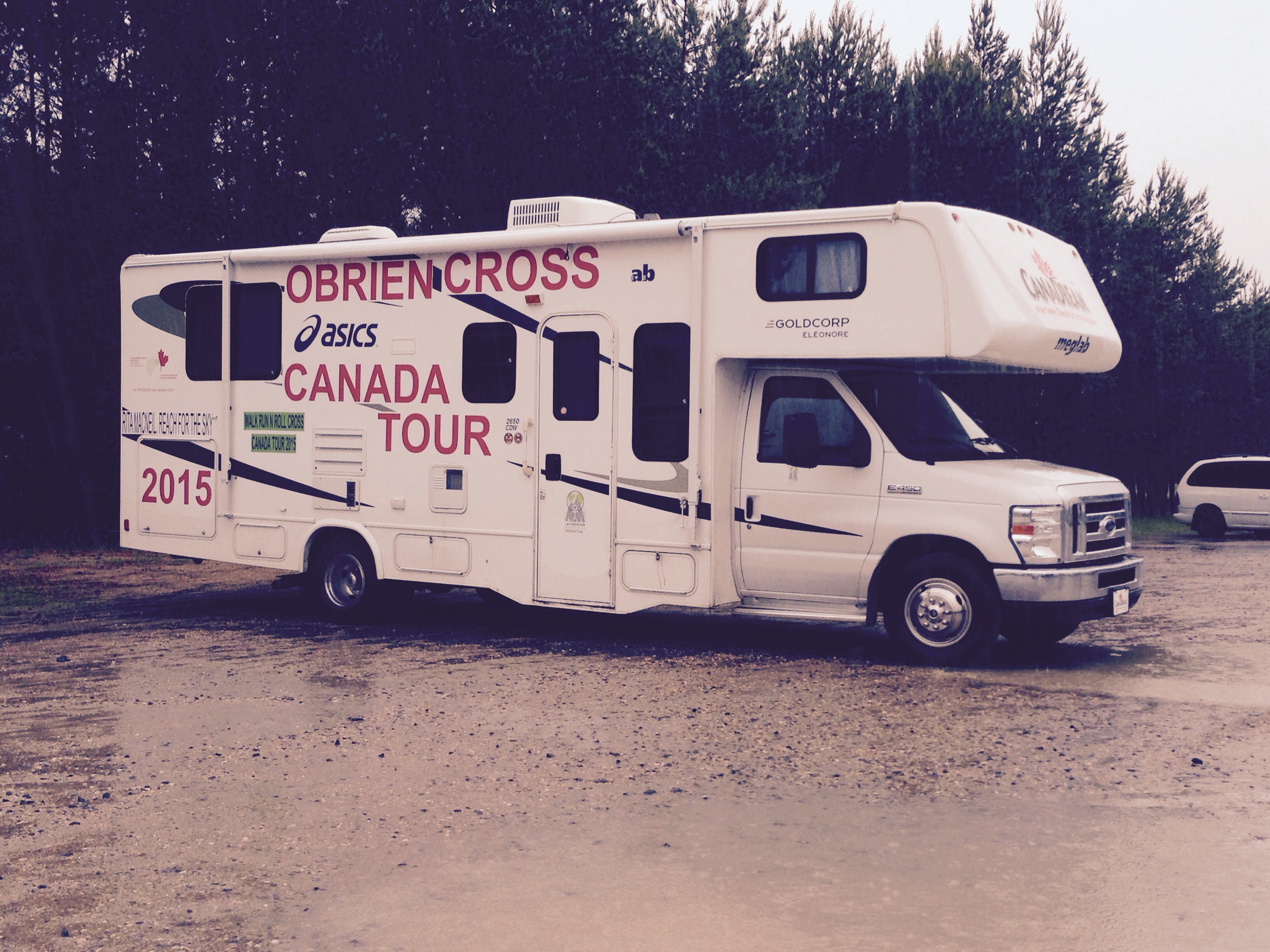 Here’s the backstory about the cross-Canada trip. The guy plodding along in the rain with the scooter is a fellow named Steve O’Brien. He lives in Lachute, Quebec and was a former track athlete. Now at 51, he is the owner of a gym and he is crossing Canada to raise funds and awareness to keep kids physically active and in school. It is all chronicled on his website, SteveOBrienFondation.com or his Facebook page of the same name. He started in Victoria on April 12 and has logged 3000 kilometres on a rather circuitous route. By the time he reaches the Atlantic coast in December, he will have covered 11,000 kilometres. (The “easy”, straight route is closer to 7,500 kilometres.)