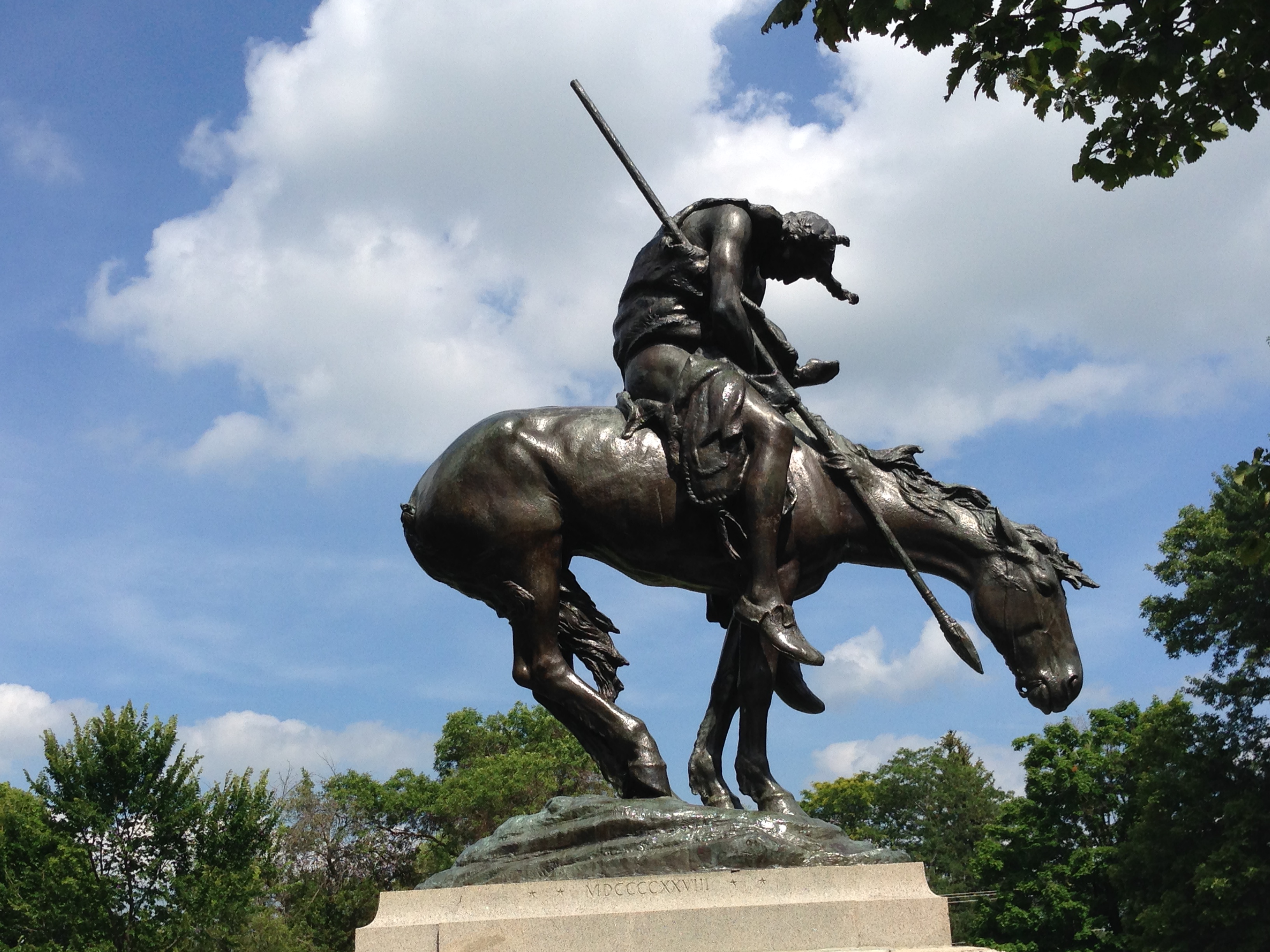 The End of the Trail sculpture is in the town’s Shaler Park and is listed on the National Register of Historic sites. The bronze is made by James Earle Fraser who was a significant American sculptor in the early 20th century.